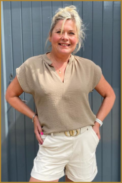 Iedere vrouw is anders, en precies dat maakt mode zo leuk. Heb je smalle schouders, dan kan een shirt met iets meer volume in de mouw of een aangeknipte mouwlijn mooi in balans brengen. Wil je juist je taille accentueren, kies dan voor een licht getailleerde top of stop een iets lossere variant nonchalant in je broek of rok. Een V-hals kan het bovenlichaam net wat langer laten lijken, terwijl een ronde hals zacht en vrouwelijk oogt. Vind je je bovenarmen spannend, dan is een iets langere korte mouw – tot net boven de elleboog – een fijne optie. In de productomschrijvingen geven we altijd een gevoel mee bij de pasvorm, zodat je rustig kunt kiezen wat het beste bij jouw figuur en jouw stijl past.