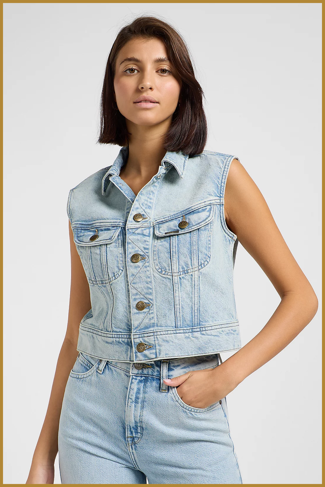 Lee Cropped Rider Gilet Blauw – Stoer en Stijlvol