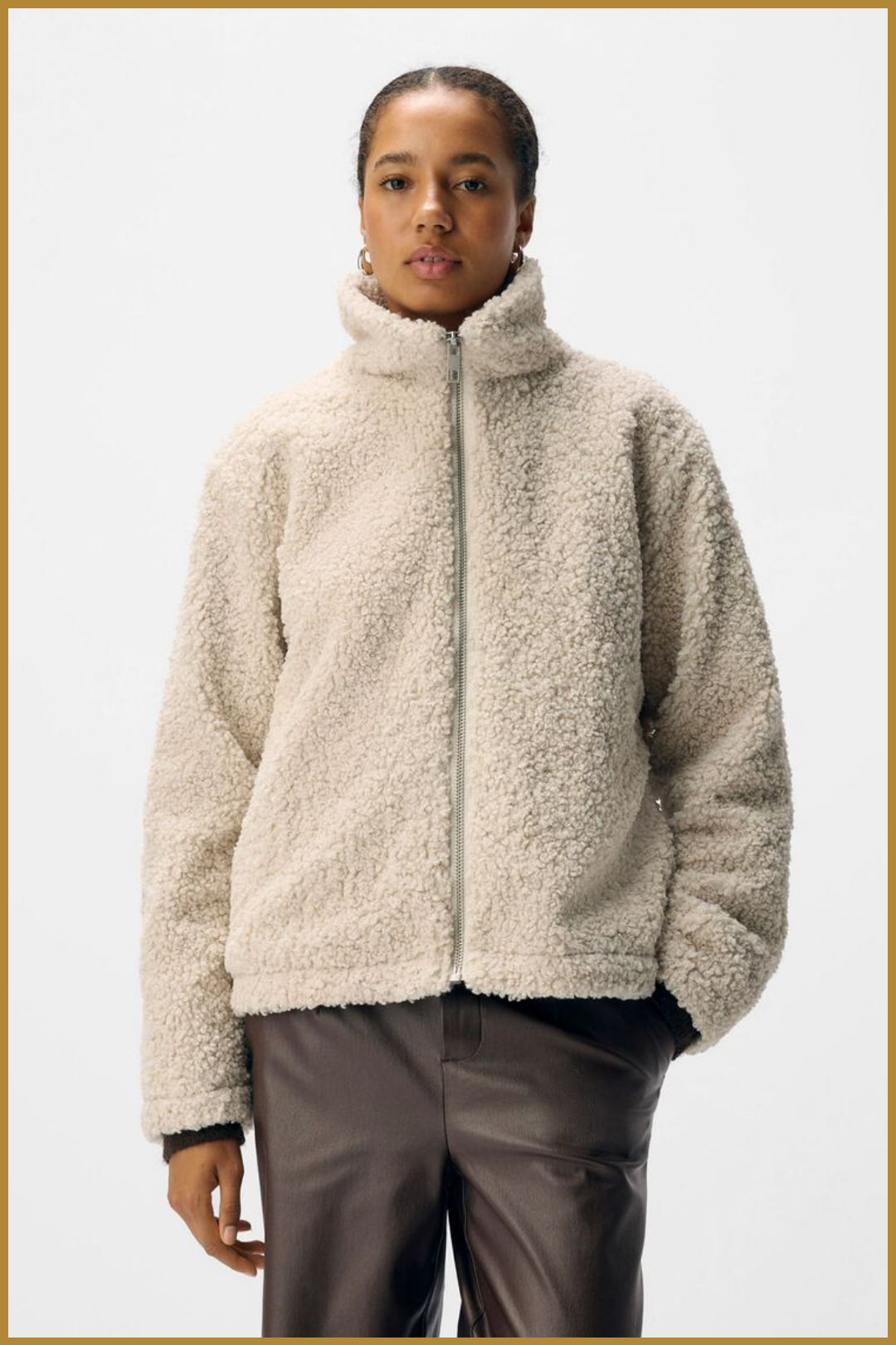 De Object Jacket Teddy White Sand geeft je niet alleen warmte, maar ook een trendy en cosy uitstraling – ideaal voor koude dagen.