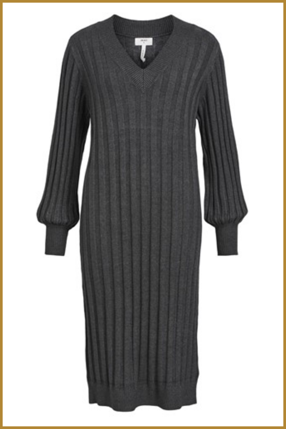 Object – OBJALICE L/S KNIT DRESS – OBJ230042 dark grey melange