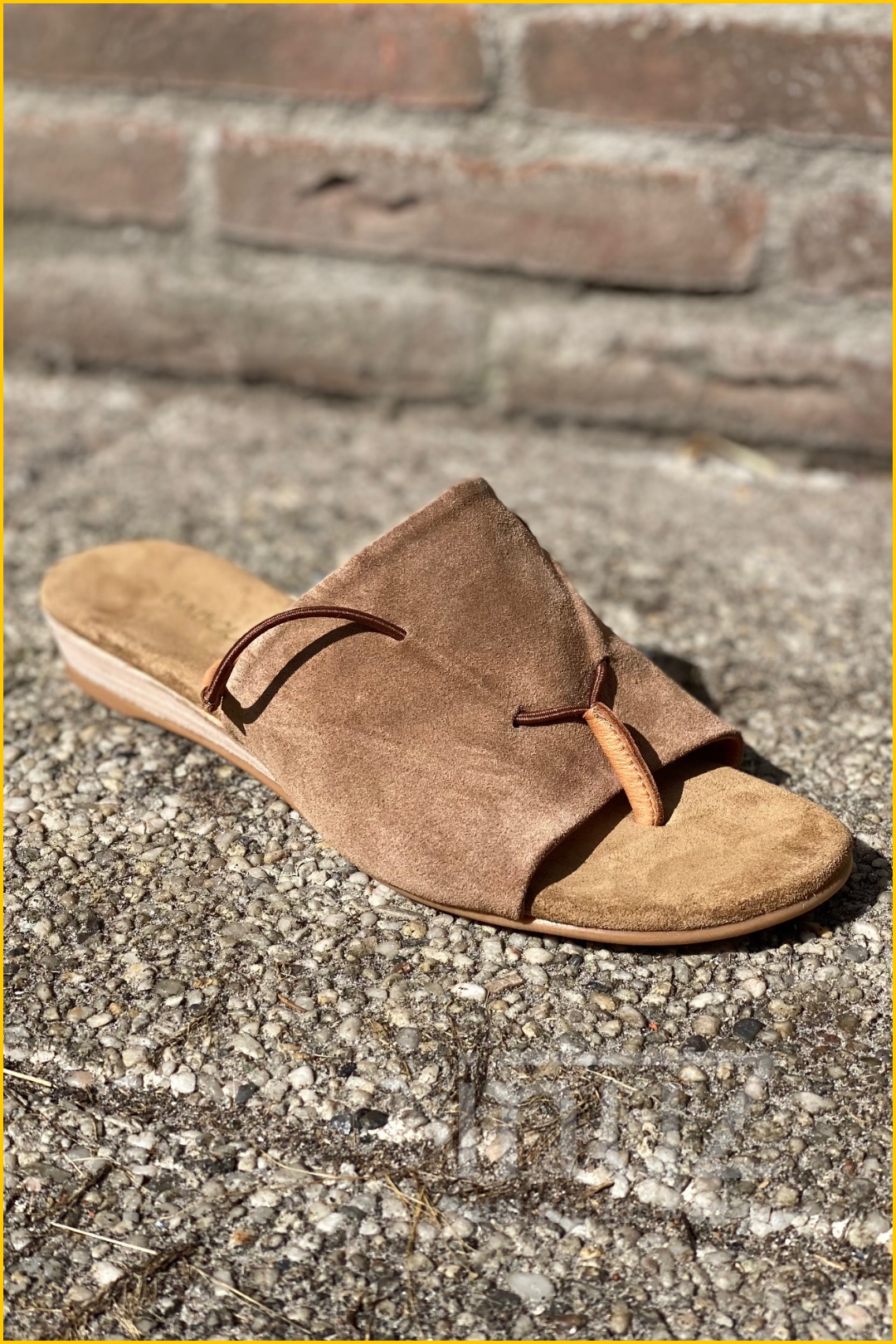 Slipper met veter suede van Babouche in de kleur Sugaro (suikerbruin).