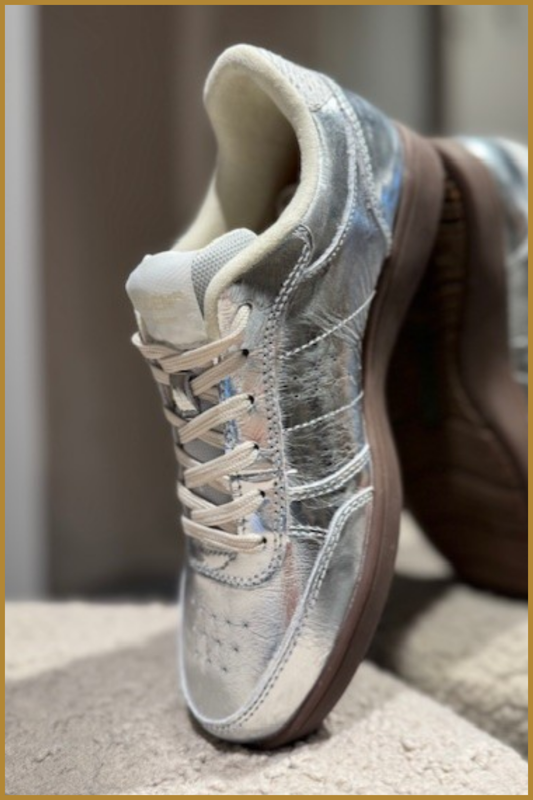 Deze sneakers komen in een stijlvolle zilveren kleur die gemakkelijk te combineren is met diverse outfits en accessoires, wat ze ideaal maakt voor elke gelegenheid.